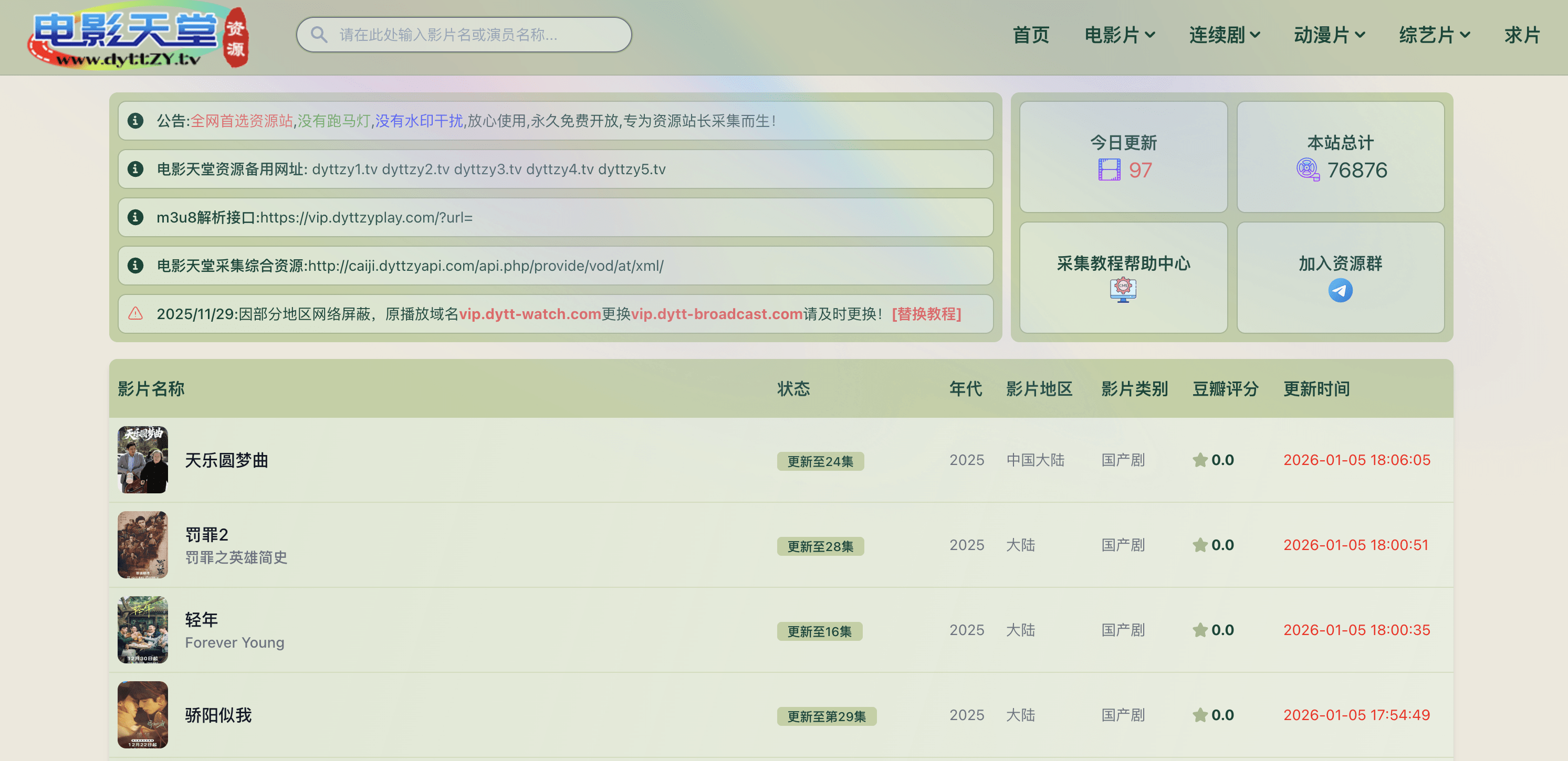 技术大佬 XAOXUU杜老师说二叉树树CM喂饭干货满满 免费部署应用服务 Zeaburhttps://zeabur.com/zh-CN/renderhttps://render.com/ClawCloudhttps://run.claw.cloud/Vercelhttps://vercel.com/Netlifyhttps://www.netlify.com/CloudFlarehttps://www.cloudflare.com/EdgeOnehttps://edgeone.ai/Koyebhttps://www.koyeb.com/ 视频资源采集站 电影天堂资源https://dyttzy.tv/茅台资源https://mtzy0.com/豆瓣资源https://dbzy.tv/